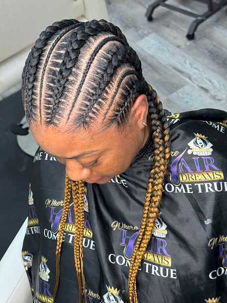 Knotless braids in the back with a Chinese bang in a bun